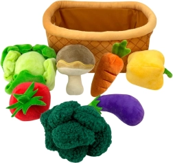 Include sette diverse imitazioni di verdure e un fungo per un gioco più vario.