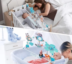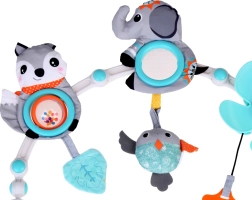 Questa splendida e funzionale palestra sospesa è un complemento ideale non solo per la culla, ma anche per passeggini o seggiolini auto. Ha elementi colorati e interessanti che attirano l'attenzione del bambino, aiutano a calmarlo e stimolano la sua curiosità. La palestra sospesa contiene elementi come massaggiagengive, componenti sonori e girevoli. Ha anche clip solide e flessibili che facilitano il montaggio su varie superfici.
