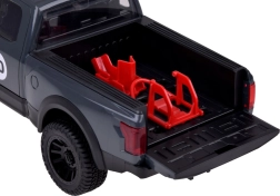 Il giocattolo pickup è progettato per offrire ai bambini spazio per il gioco creativo. Sul portapacchi posteriore è posizionata una motocicletta rimovibile che aumenta l'interattività del giocattolo. Sul tetto del veicolo ci sono tre pulsanti che attivano le luci lampeggianti per esperienze realistiche. Il giocattolo supporta la creatività dei bambini, le abilità manuali e l'immaginazione.