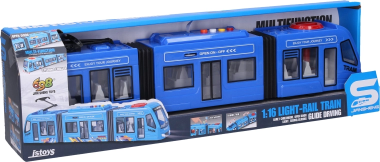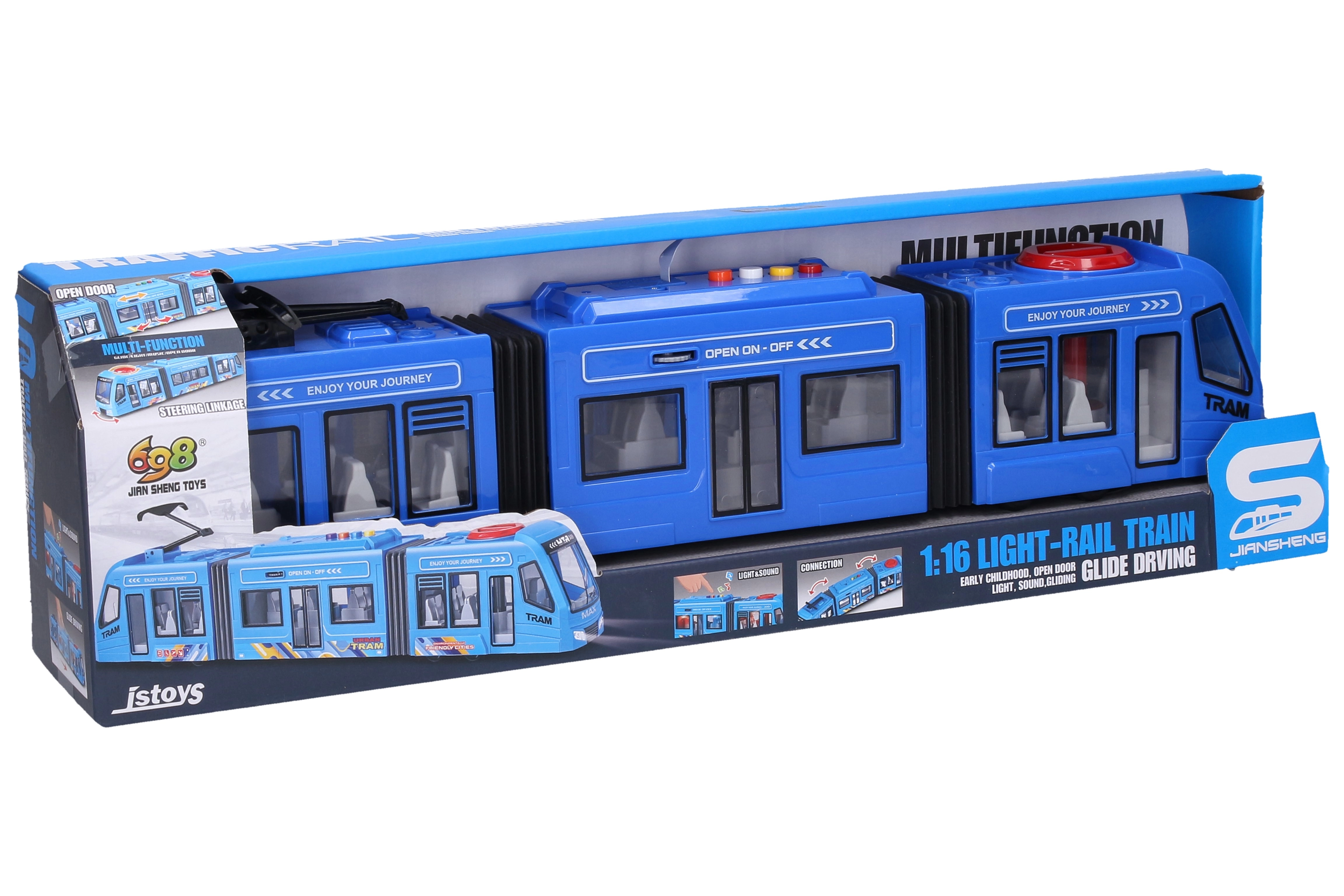 Tram realistico per piccoli e grandi appassionati del trasporto urbano. Offre effetti luminosi e sonori, ruote libere e un controllo semplice tramite pulsanti sul tetto. Grazie a apertura delle porte centrali e sterzata delle ruote anteriori il gioco è ancora più divertente. Le batterie 3× AG13 sono incluse nella confezione, quindi puoi partire subito per il percorso.