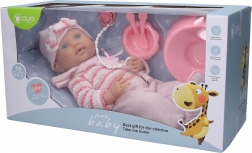 Un dolcissimo bebè in una morbida tutina rosa farà felice ogni piccola mamma. La bambola di 40 cm è ideale per giocare e prendersene cura e arriva con accessori pratici: vasino, ciotola, posate e ciuccio per un’esperienza di gioco più realistica.