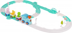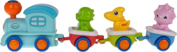 La locomotiva si illumina davanti e sulla parte superiore e riproduce allegre melodie: il viaggio è ancora più divertente e coinvolgente per i bambini.
