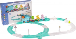 - binari, locomotiva, 3 vagoni, 3 dinosauri, 5 segnali stradali, alberello