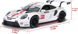 Il modello è dotato di stampe e grafica realistiche Porsche RSR che ne sottolineano la natura corsaiola. I pneumatici da corsa in gomma e le ruote anteriori sterzanti contribuiscono all'aspetto realistico e alla funzionalità del modello, rendendolo un ottimo complemento per ogni appassionato di auto.
