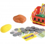 Il set include tutto il necessario per gestire un negozio immaginario, inclusi cestino con accessori, soldi da gioco e carta di credito. Per i bambini c'è la possibilità di fare calcoli direttamente sul registratore, il che supporta le loro abilità matematiche e creatività.