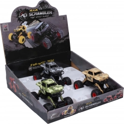 Divertente auto fuoristrada con meccanismo a retrocarica per una guida dinamica su qualsiasi terreno. Offre una struttura robusta, sospensioni funzionanti e dimensioni compatte 15 × 9 × 9,3 cm. Disponibile in 3 varianti di colore – verde, giallo, grigio.