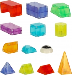 I blocchi magnetici sviluppano la motricità fine, la coordinazione occhio–mano e favoriscono il riconoscimento di colori, forme e lettere.