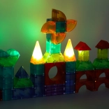 Gli elementi luminosi integrati trasformano ogni costruzione in uno spettacolo brillante e motivano i bambini a creare ancora di più, soprattutto al crepuscolo.