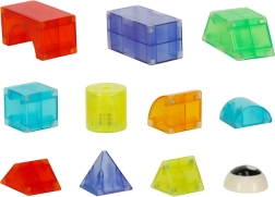 I pezzi trasparenti in molte forme e colori favoriscono costruzioni creative, dai modelli semplici a complesse strutture 3D.