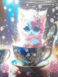 Scopri la magia della pittura diamantata e trasforma il motivo prestampato del gattino nella tazza da tè in un quadro luminoso e ricco di dettagli. Grazie alla cornice solida, la tela è stabile e comoda da lavorare, e l’opera finita può essere facilmente esposta o regalata. La penna applicatrice e la cera facilitano l’incollaggio preciso degli strass, così chiunque può mettersi all’opera.