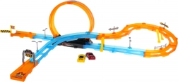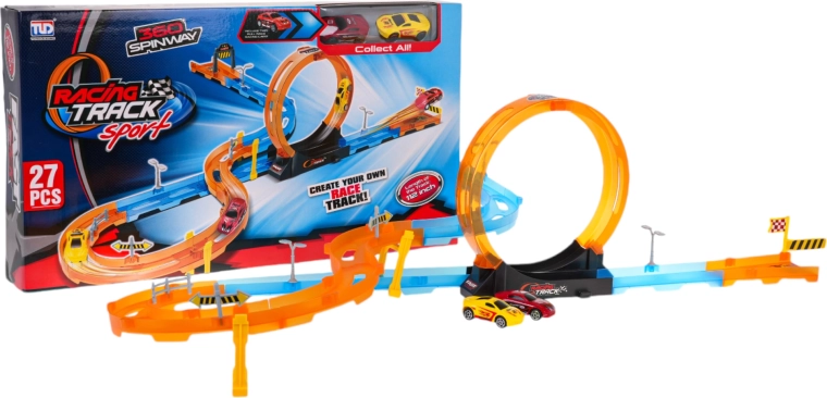 Grande pista da corsa con curve strette, looping e due macchinine incluse, ideale per bambini dai 3 anni. Include 27 pezzi per l'assemblaggio fai da te.