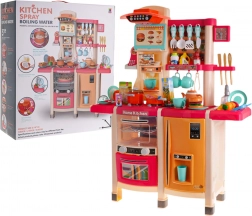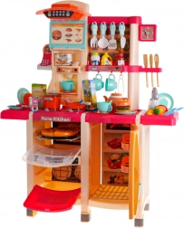 Inclusi forno apribile con luce e suono, frigorifero con imitazione di erogatore d’acqua, lavastoviglie, macchina da caffè integrata, pannello con ventola ed effetti, e anche un telefono con funzioni luminose e sonore. La ricca dotazione comprende stoviglie, alimenti con velcro, carte con ricette e altri accessori per ore di divertimento.