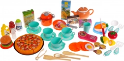Forno, frigorifero, lavastoviglie, macchina da caffè, telefono e decine di accessori: pentole, padella, utensili, bevande, alimenti con chiusura a velcro e carte con ricette. Tutto per una cucina da gioco completa.