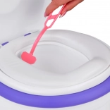 Premendo il pulsante il bambino sentirà un realistico suono di scarico, favorendo il passaggio naturale al vero WC e aumentando la motivazione a usare il vasino.