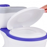 Vasino realistico a forma di WC con seduta morbida e box porta salviette umidificate aiuta i bambini a imparare a usare il vasino in modo divertente. Premendo il pulsante emette il suono di scarico e allegre melodie, ha un contenitore estraibile per una pulizia facile, struttura stabile ed è incluso anche un spazzolino per la pulizia.