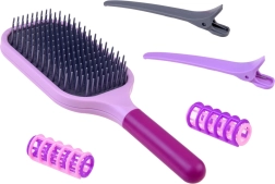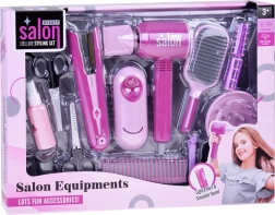 Phon, piastra, spazzole, pettini, mollette, bigodini e forbici – tutto ciò di cui un piccolo parrucchiere ha bisogno per creare acconciature a casa e in viaggio.