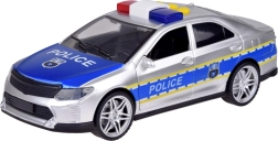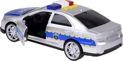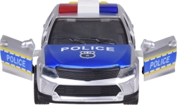 Un'auto della polizia realistica per i piccoli tutori della legge offre effetti luminosi e sonori, porte anteriori apribili e ruote in gomma antiscivolo. Tre pulsanti attivano sirene, clacson e suono di avviamento del motore. Dimensioni compatte 24 × 12 × 9 cm, alimentazione 2× AAA (incluse nella confezione).