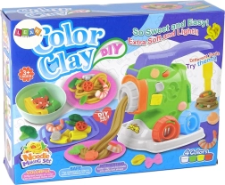 La macchinetta per la pasta, per struttura, ricorda una vera macchina per pasta, così il tuo piccolo chef potrà fare qualche esperimento in cucina senza sprecare veri alimenti. Il componente principale della macchina è una pressa con cui si può spremere una pallina di impasto dandole una forma specifica. Le punte intercambiabili permettono di creare diversi tipi di pasta. Sono disponibili la forma degli spaghetti classici e della pasta a forma di maialino.