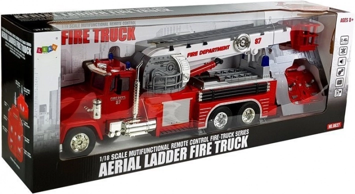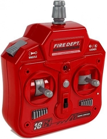 - Un grande vantaggio è che la scala estensibile si allunga e si ritrae liberamente. Si controlla con pulsanti separati sul radiocomando posto sul retro. Può anche ruotare attorno al proprio asse. Il tuo piccolo pompiere ora può spegnere l’incendio da entrambi i lati.