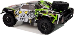 Il set è RTR – Ready To Run: nella confezione trovi l’auto, il radiocomando a pistola 2,4 GHz, batteria 7,4 V 850 mAh e caricabatterie. Il raggio di controllo è di circa 50 metri, l’autonomia è di circa 15 minuti e la ricarica dura circa 3 ore. Materiali robusti (componenti in metallo e plastica, elettronica, gomma) aumentano la resistenza agli urti.