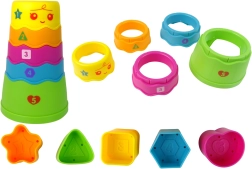 - Sorter di forme luminoso, scivolo per palline, ingranaggi, sonaglino rotante, piramide a 5 piani
