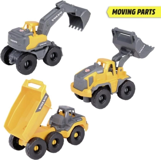 Con licenza VOLVO, questo set porta tre macchine indispensabili per ogni cantiere dei bambini. Dettagli precisi, costruzione robusta in plastica e sicuro meccanismo a ruota libera favoriscono lo sviluppo della motricità fine, dell'immaginazione e del gioco di ruolo.