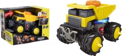 Scopri il divertente autocarro ribaltabile lungo 15,5 cm, che entusiasmerà i tuoi bambini con effetti luminosi, sonori e di movimento. Controllo semplice con pulsanti sulla piattaforma e sui lati, 3 batterie AAA incluse nella confezione – pronto per giocare subito.