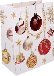 Elegante borsa regalo natalizia in formato M, pratica con dimensioni 26 × 32 × 10 cm e moderni motivi festivi. Ideale per un confezionamento rapido ed elegante dei regali. Disponibili 4 varianti di design per un abbinamento perfetto al contenuto. Materiale robusto e manico pratico garantiscono un trasporto facile e sicuro.