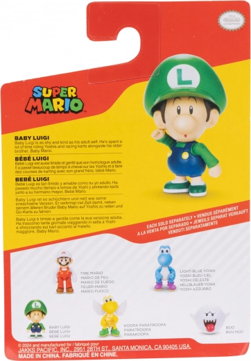 Questa wave include cinque personaggi amatissimi: Mario, Yoshi azzurro chiaro, Baby Luigi, il fantasmatico Boo e il volante Koopa Paratroopa – ciascuno con dettagli e colori autentici.