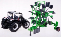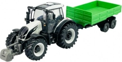 Questo modello di qualità combina il corpo in metallo del trattore con accessori in plastica realizzati con precisione per un look autentico. Grazie alle grandi ruote, alla cabina e agli elementi realistici, sembra una macchina vera, mentre il rimorchio verde ribaltabile amplia le possibilità di gioco e di esposizione in vetrina.