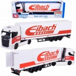 Il camion con rimorchio Scania 770 S di Bburago è un affascinante modello in scala 1:43, perfetto per appassionati di modellismo e collezionisti. Questo modello in metallo riproduce fedelmente il design potente del famoso camion Scania, combinato con un rimorchio bianco e il logo Eibach distinguibile.