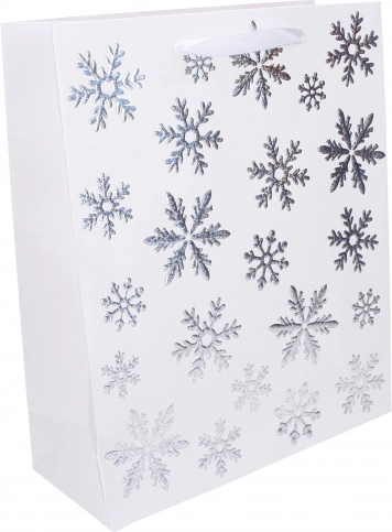 Elegante borsa regalo natalizia in formato L con dimensioni 31 × 42 × 12 cm. Ideale per confezionare regali più grandi, con manici robusti e carta di qualità per una consegna facile ed elegante. Disponibili 4 varianti di motivi natalizi.