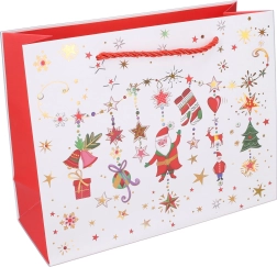 Questa busta regalo natalizia facilita l’impacchettamento dei doni e dona un aspetto festivo. La misura media M è universale per i regali più comuni e il materiale di qualità garantisce che tutto rimanga al suo posto in sicurezza.