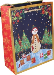 Elegante busta regalo natalizia in formato L con dimensioni 42 × 31 × 12 cm, ideale per confezionare regali più grandi. Offre 4 design festivi, struttura robusta e manico comodo per un facile trasporto.