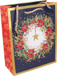 Elegante borsa regalo natalizia in misura M con dimensioni 26 × 32 × 10 cm, che facilita l’impacchettamento dei regali e dona un tocco festivo. Offre struttura robusta, formato pratico e 4 attraenti motivi natalizi.