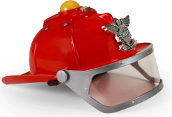 Il casco è progettato per sembrare un vero casco da vigile del fuoco, incluso un distintivo decorativo e un colore rosso brillante.