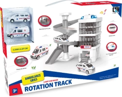 Questo set include una discesa rotante multistrato con una macchinina ambulanza in metallo che garantisce un'esperienza di gioco interattiva.