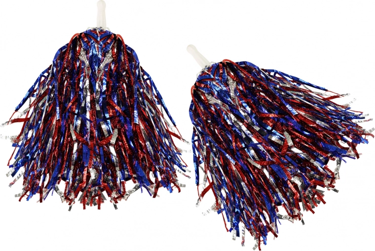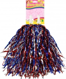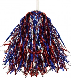 Il pom-pom è realizzato con nastri rossi, blu e argento, che aggiungono energia e vivacità a ogni evento.