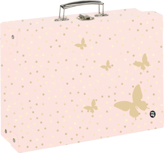 Valigetta laminata per bambini OXY GO con motivo a farfalla ideale per riporre materiale scolastico o oggetti artistici. Può contenere il formato A4 e grazie alla pratica maniglia è facile da trasportare.