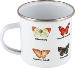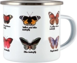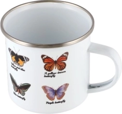 Rendi i tuoi momenti con caffè o tè ancora più piacevoli con la tazza smaltata dal magnifico design con farfalle. Questa tazza combina estetica e funzionalità grazie alla sua superficie smaltata di qualità e al bordo in metallo.