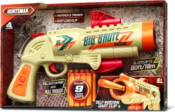 Potente e divertente pistola in schiuma Huntsman Big Brute (33 cm) con gittata fino a 18 m per un'azione di gioco senza compromessi. Il caricatore da 6 colpi e la confezione con 9 proiettili in schiuma garantiscono un divertimento prolungato; armare il cane fa avanzare automaticamente il caricatore al colpo successivo e la pressione del grilletto spara all'istante.