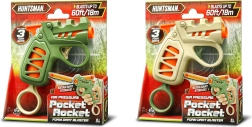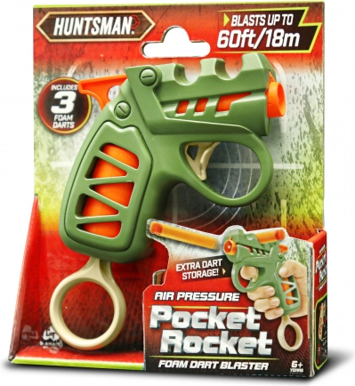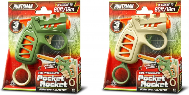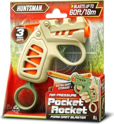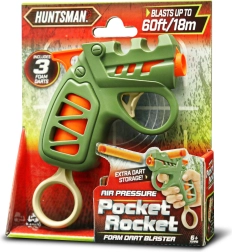 La pistola tascabile HUNTSMAN compatta, lunga 13 cm, convince per la semplicità d'uso e una gittata fino a 18 m. I dardi si inseriscono facilmente nella canna, la ricarica avviene tirando l'anello nella parte inferiore e lo sparo si attiva con il grilletto. Nella confezione trovi 3 dardi in schiuma e puoi scegliere tra 2 varianti di colore – verde e marrone.