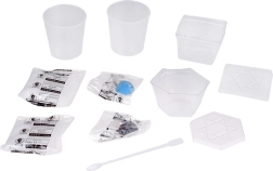 Misurini, polveri, semi di cristallo, vetrinette e bastoncino per mescolare – dotazione completa con cui iniziare subito senza ulteriori acquisti.