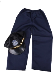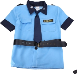 Elegante costume da poliziotto per bambini per carnevali e feste in maschera, taglia 110–120 cm. Include tutto ciò di cui un piccolo tutore della legge ha bisogno: berretto, camicia, cravatta, cintura e pantaloni.