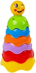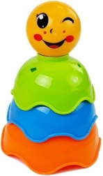 La piramide da gioco dai colori dell’arcobaleno composta da bicchierini impilabili sostiene lo sviluppo del bambino fin dai primi mesi. I bicchierini in plastica di alta qualità e sicura hanno bordi lisci e arrotondati e in cima c’è il bicchierino più piccolo con un viso allegro. Il giocattolo sviluppa la motricità fine, la coordinazione occhio–mano, il riconoscimento di colori e forme e il pensiero logico.