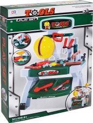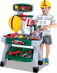 Il banchetto da lavoro per bambini con un ricco set di attrezzi per piccoli tuttofare offre tutto il necessario per un gioco creativo e lo sviluppo della motricità. Include casco, viti, dadi, ingranaggi, pinze, martello, chiavi, seghetto, pinza combinata, cacciaviti e morsa. Le dimensioni compatte 44 × 28 × 71 cm garantiscono un facile posizionamento nella cameretta.