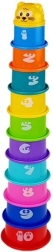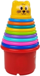 Questa piramide arcobaleno colorata è un giocattolo ideale per lo sviluppo della motricità e abilità del bambino. È composta da tazze di vari colori con stampe, con la tazza più piccola che ha una stampa di gatto. La piramide ha una forma liscia, quindi è sicura durante il gioco.