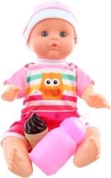 Inclusi biberon e gelato per un gioco creativo. A scelta 2 varianti di colore con gufetto sulla maglietta (spediamo secondo disponibilità).