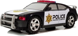 Pattuglia in bianco e nero con lampeggiante, stemma e paraurti per inseguimenti mozzafiato. Ideale per il gioco di ruolo e per imparare le regole della sicurezza in modo divertente.