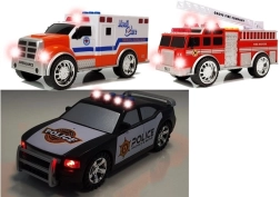 Questo set di veicoli di soccorso farà felici tutti i piccoli appassionati di azione e adrenalina. Nella confezione trovi un'auto della polizia, un camion dei pompieri e un'ambulanza – ogni modello ha colori vivaci, scritte tipiche e dettagli che avvicinano i bambini al lavoro delle vere unità di emergenza. Premendo i pulsanti si accendono le luci rosse e si attivano sirene e clacson, rendendo il gioco ancora più realistico.
